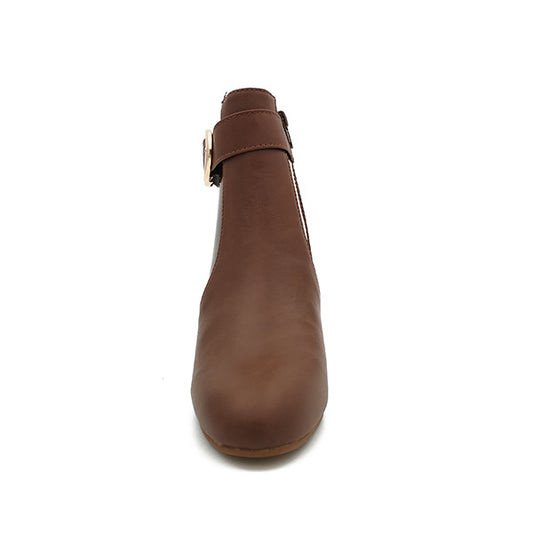 Round High Heel Side Zip Ankle Boot - 1021
